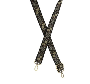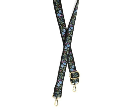 1.2"" Black Floral Meadow Guitar Strap