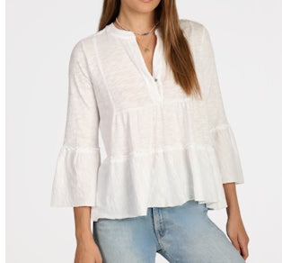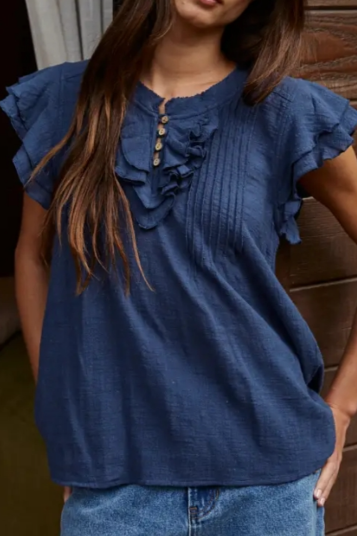 Woven Cotton Linen Button V-Neck Short Sleeve Top