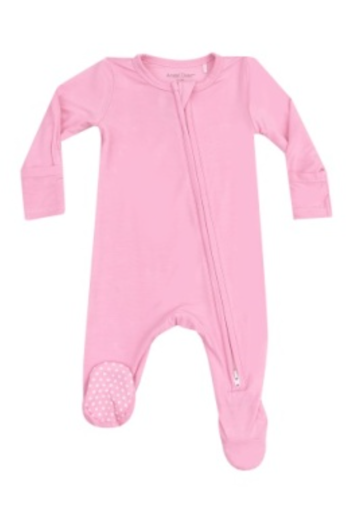 Solid Cameo Pink/Hydrangeas 2 Way Zipper Footie
