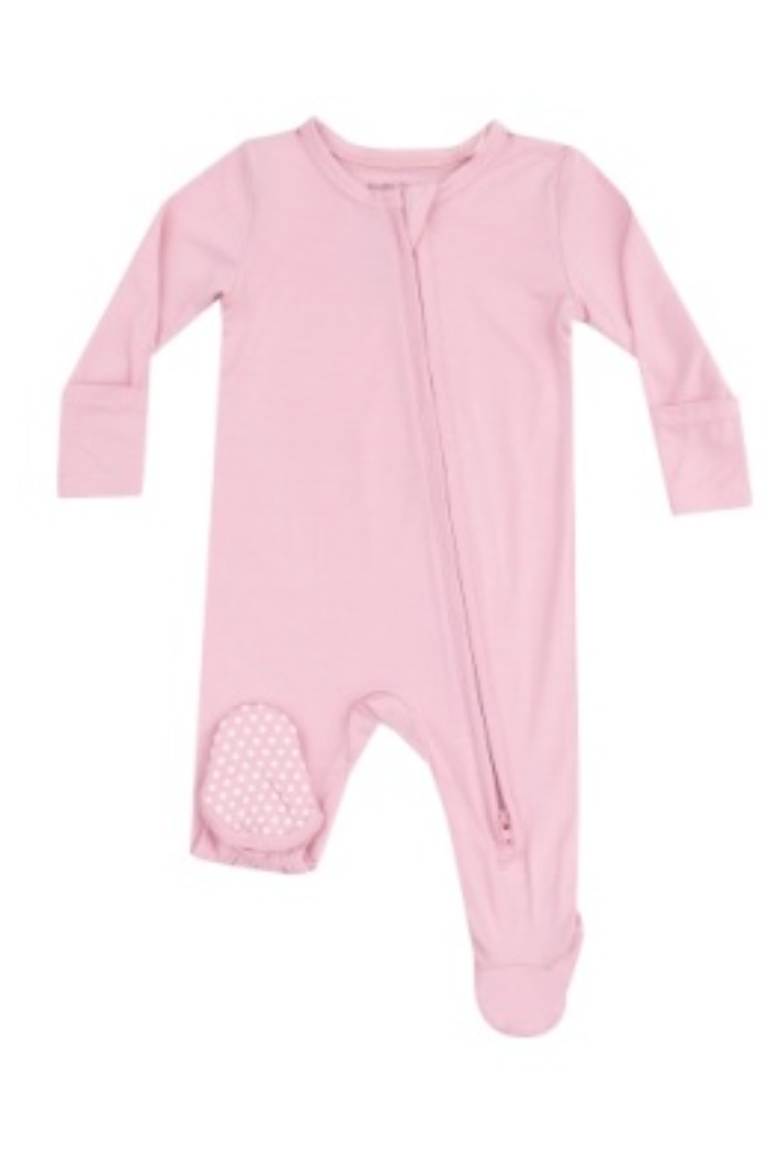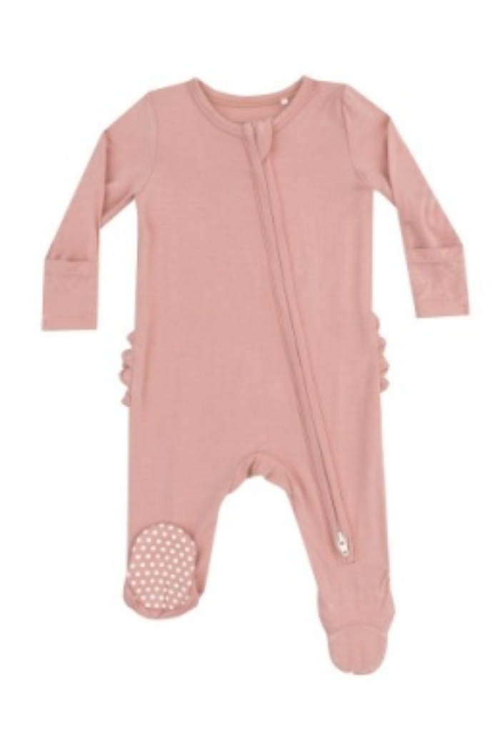 Solid Mellow Rose 2 Way Zipper Ruffle Back Footie