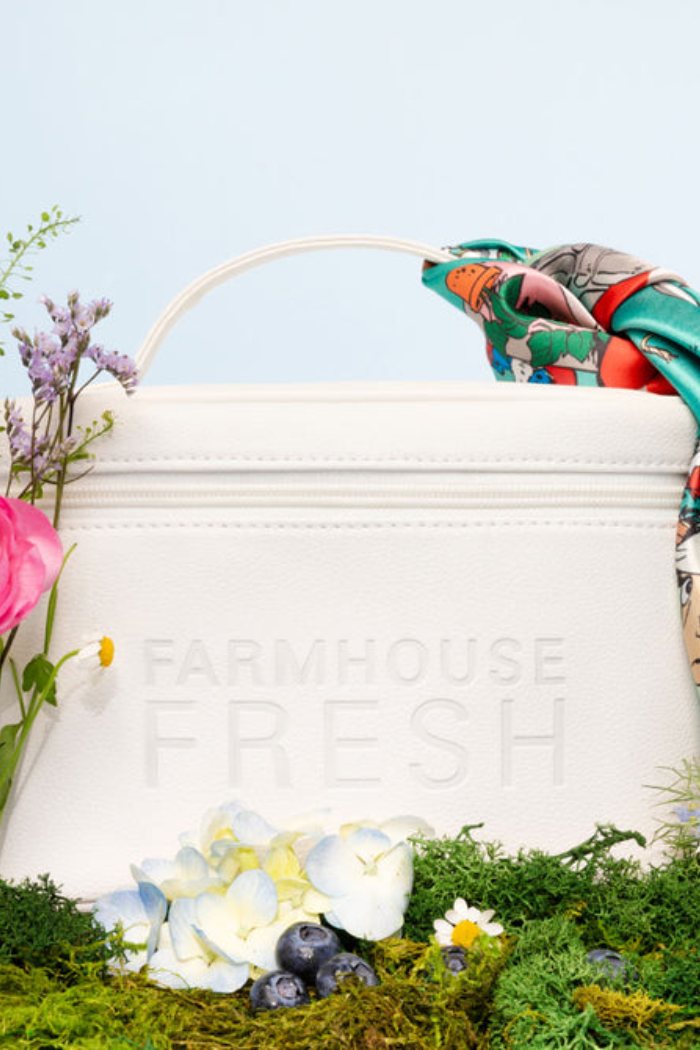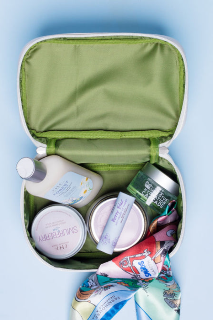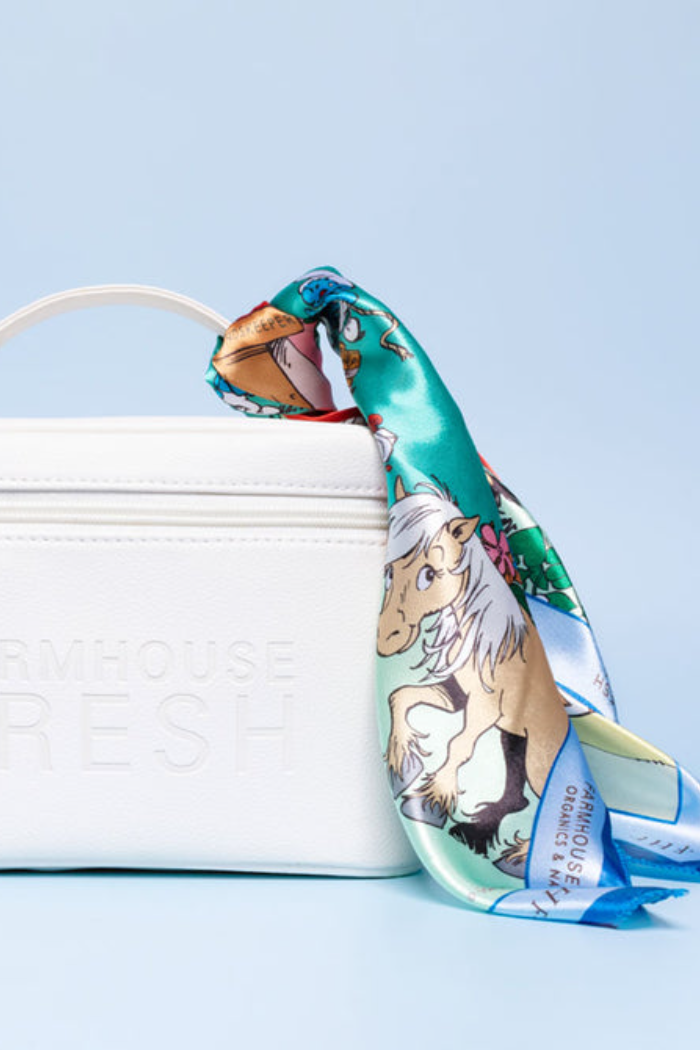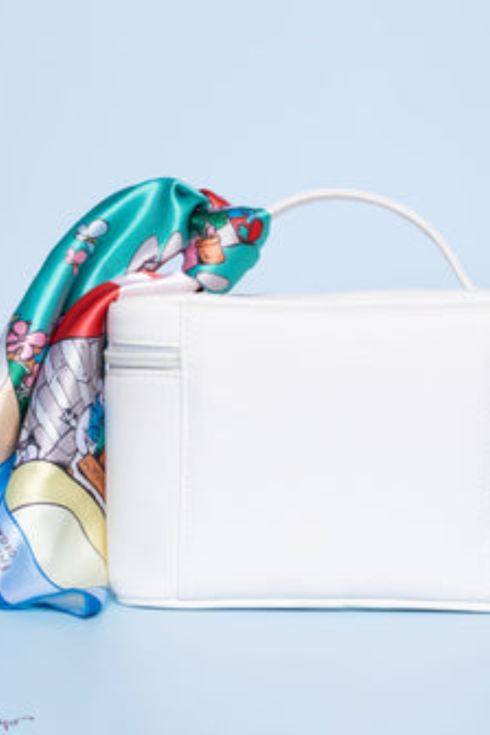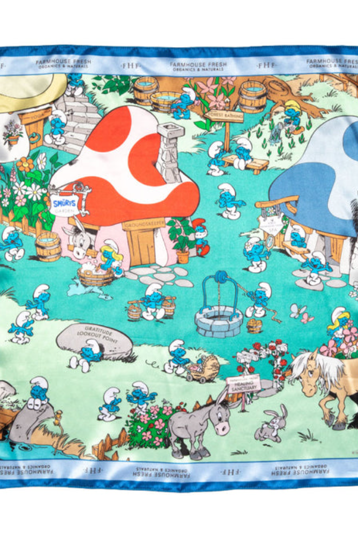 FHF Vegan Leather Cosmetic Bag with Smurf Village Silk Scarf