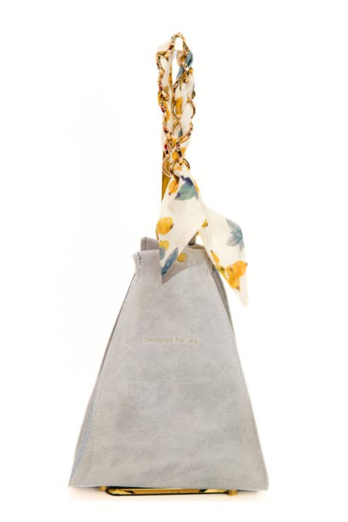 - Scarf laced gold chain strap (13") (scarf is removable)