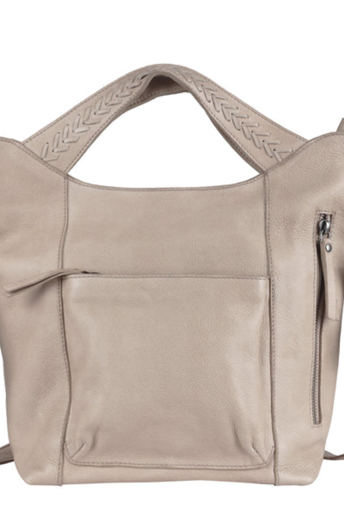 (2) top handles with hand woven detail-4” drop and 3/4” wide adjustable crossbody strap-30” max: 15” min drop