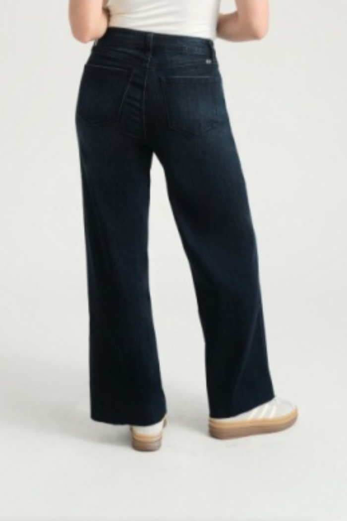 Meet our newest show-stopping style, a Slim Wide Leg in a best-selling dark indigo rinse named Sade. They feature acurved seaming detail and a raw hem, making these your new favorite jeans for fall. They are the perfect length for booties, a heel, or sneakers, and can be dressed up for the night or dressed down with a classic white tee. They are comfortable, stretchy, and that seaming detail creates a contouring effect without even trying. • Rise: 10.5" • Leg Opening: 22.5" • Inseam: 29" • Care: Machine washable, Hand wash, Dry clean, Spot clean, Wipe clean, Machine Wash Cold • Country of Origin: Imported • Size: Model is wearing a size 27 • Fit: Wide Leg • Rise: High-Rise SKU: CJ20C2414A3-26F Wash: Sade