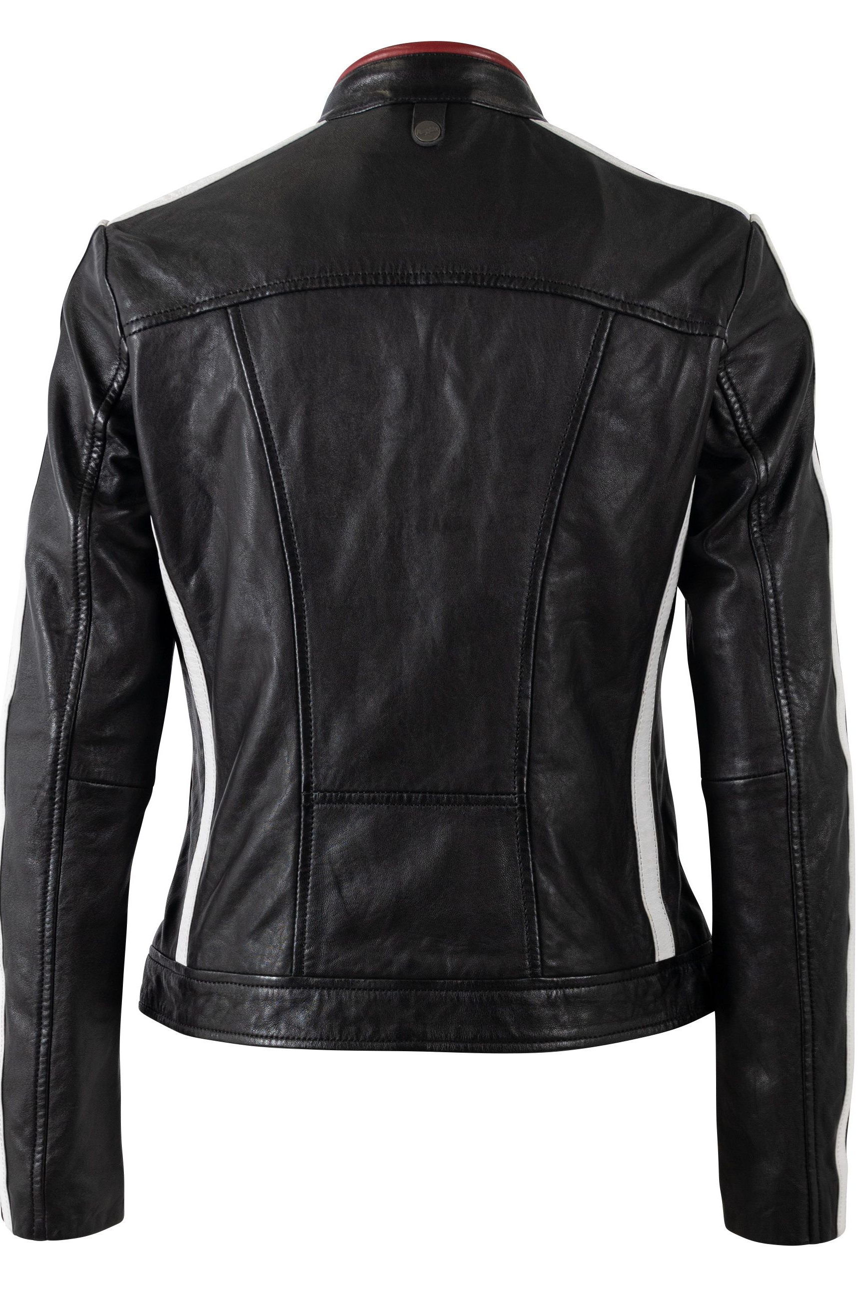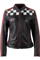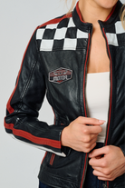 The Payton Leather Jacket channels classic motorsport style with bold drag-race flag detailing for standout appeal. Made from lambskin leather, it brings energy and attitude to a timeless silhouette.