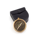 A vintage-inspired pocket compass finished in aged brass and housed with a snap-close leather pouch. The Cheshire Cat Compass with Leather Pouch pairs nautical charm and whimsical detailing for desktop display or travel. Designed and sold by Sugarboo & Co., this piece reads like a small collectible meant to evoke exploration and storybook style.