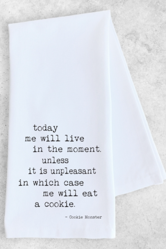 White with black text that highlights any decor - Machine washable and fade resistant - Individually wrapped in a minimalist band with towel name on it for easy display and the perfect gift!