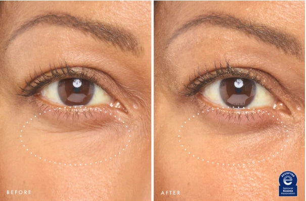 Accepted by the National Eczema Association—this luxuriously rich, fragrance-free eye cream cushions delicate under-eyes with deep hydration and replenishing comfort. Infused with advanced peptides, kakadu plum, and a natural retinol alternative, it helps visibly smooth, brighten, and restore youthful luminosity. Eyes appear refreshed, rested & beautifully alive again!