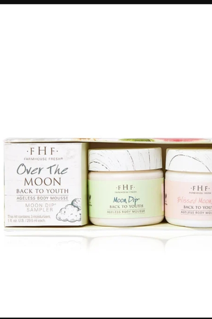 This 3-piece travel trio of whipped billowy softness is sure to please! Our Moon Dips® are not only addicting with a cloudlike-touch, but also brimming with the dreamiest anti-aging ingredients – like vitamins A & E, advanced peptides & retinyl palmitate!