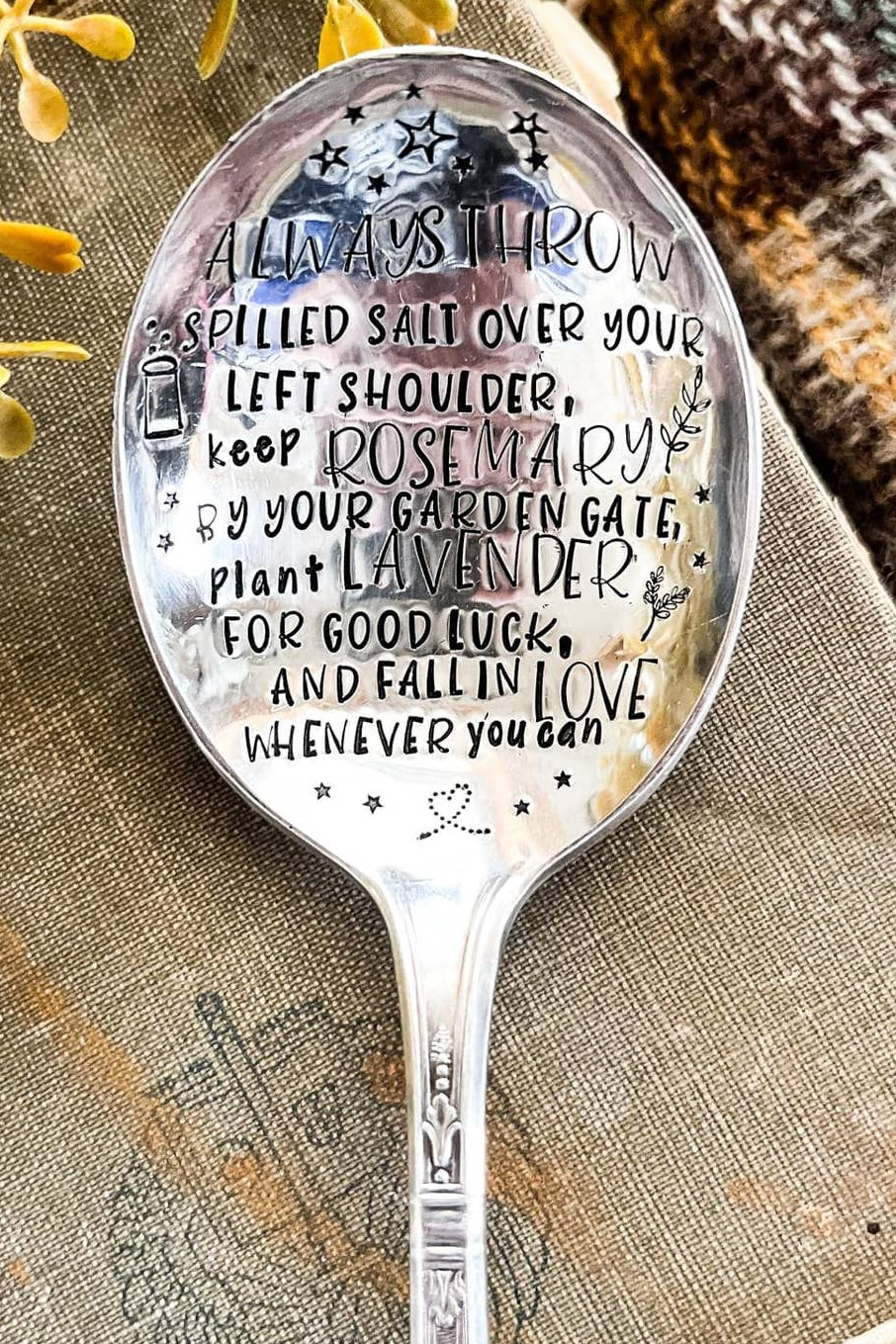 A quote from Practical Magic- “Always throw spilt salt over your left shoulder, Keep rosemary by your garden gate, plant lavender for luck, and fall in love whenever you can”