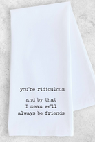 White with black text that highlights any decor - Machine washable and fade resistant - Individually wrapped in a minimalist band with towel name on it for the perfect gift!