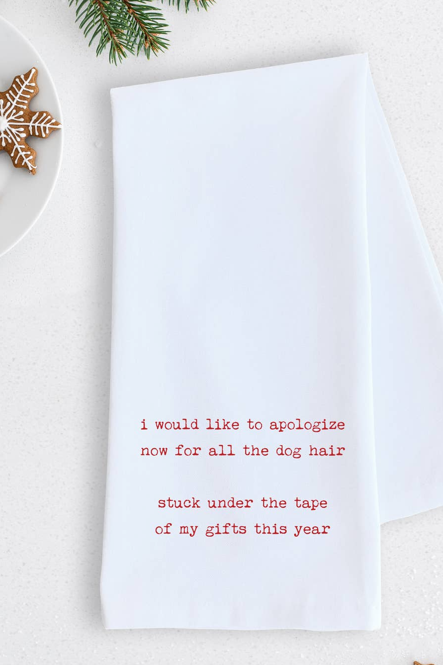 Dog Hair Stuck Under the Tape on Gifts - Tea Towel