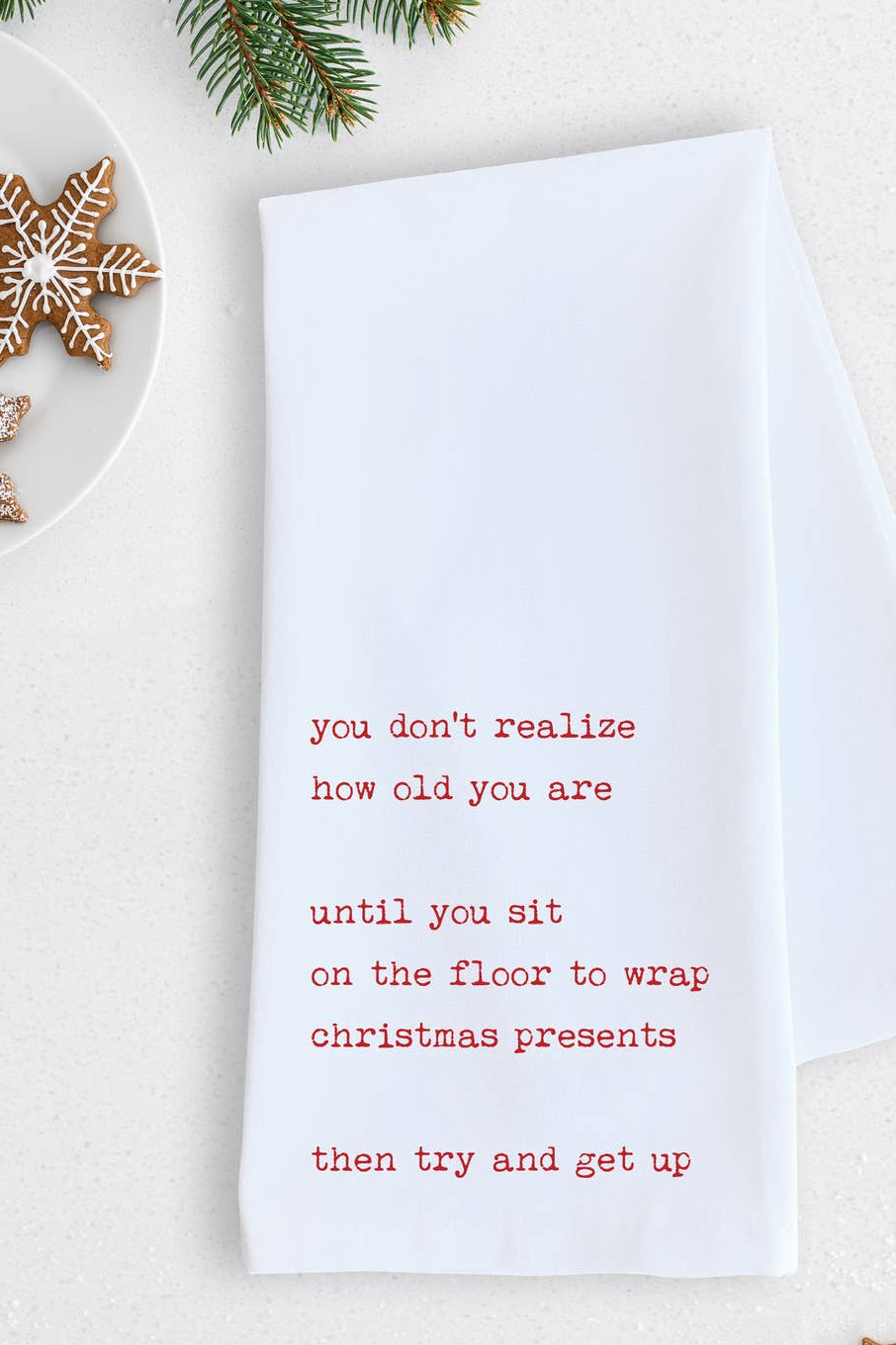 Sit On the Floor to Wrap Christmas Presents - Tea Towel