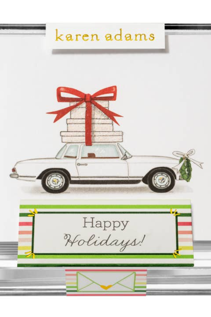 Send holiday cheer with this perfectly adorable box of hand-glittered cards.