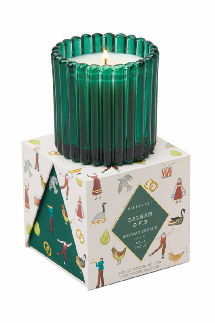 Holiday 4.5 oz Green Glass Boxed Candle-Balsam & Fir