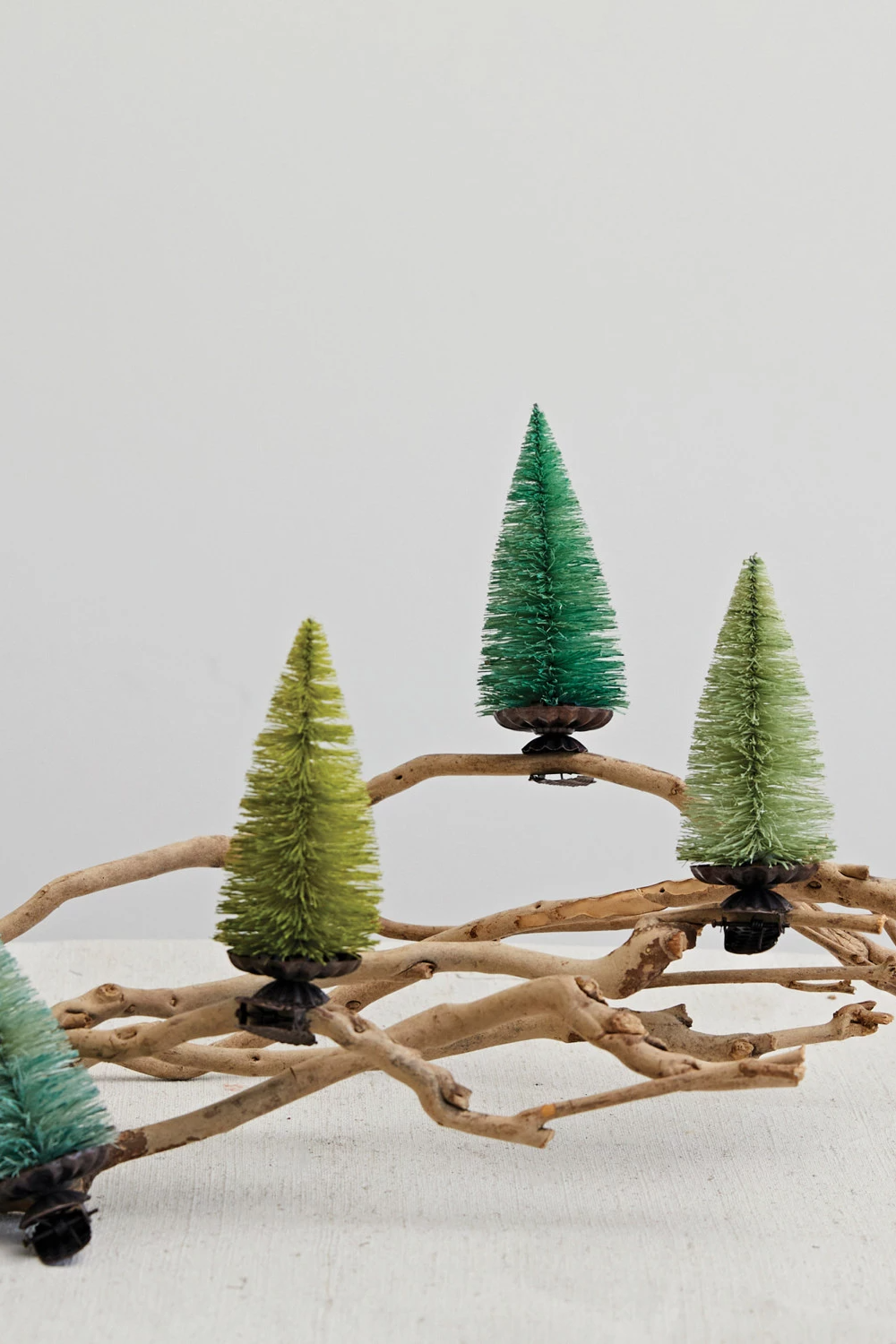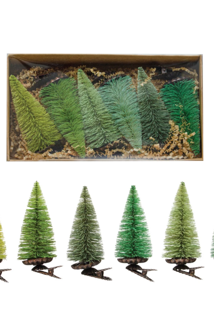 Bottle Brush Tree Clip-on Ornaments, Green Colors, Boxed Set of 6