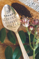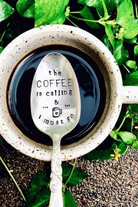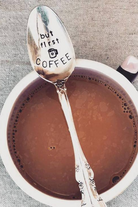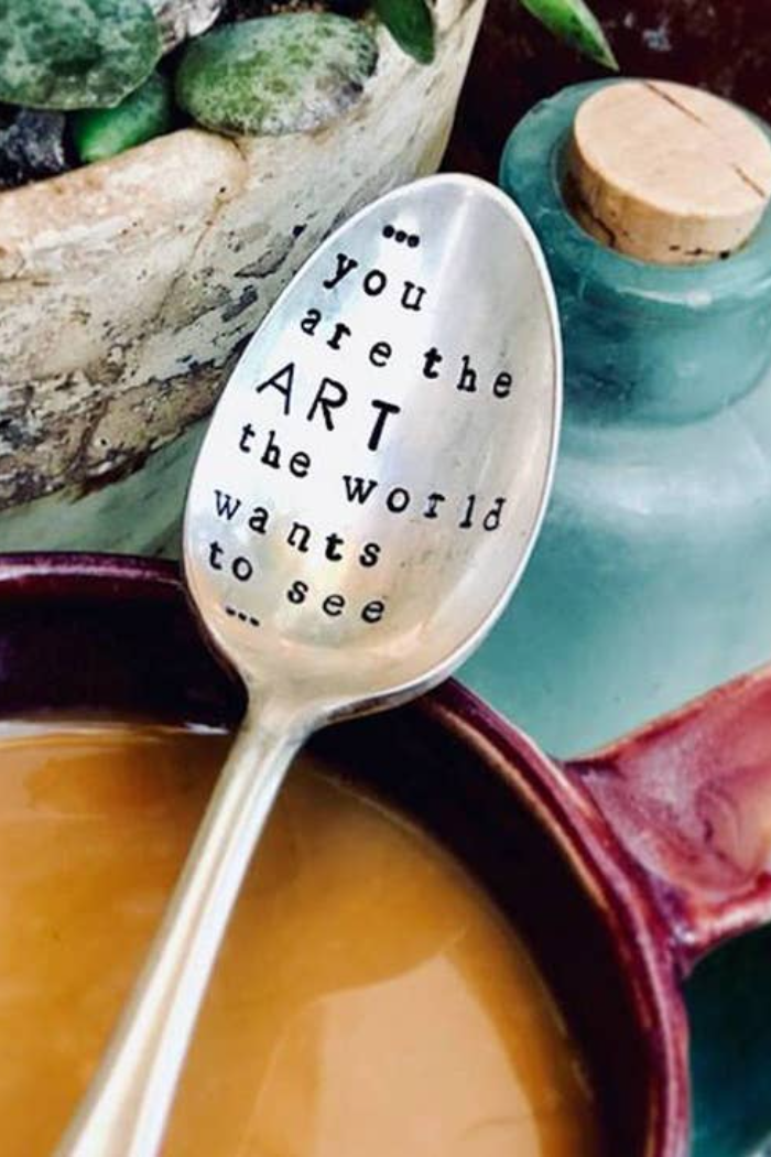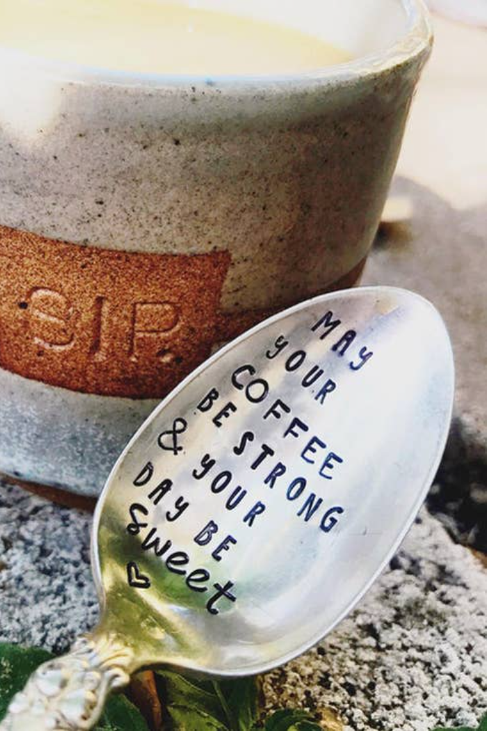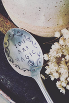 All stamped kitchen accessories are made with vintage silver plated flatware that are found at local antique and vintage thrift stores around town. Each one is stamped by hand, letter by letter.