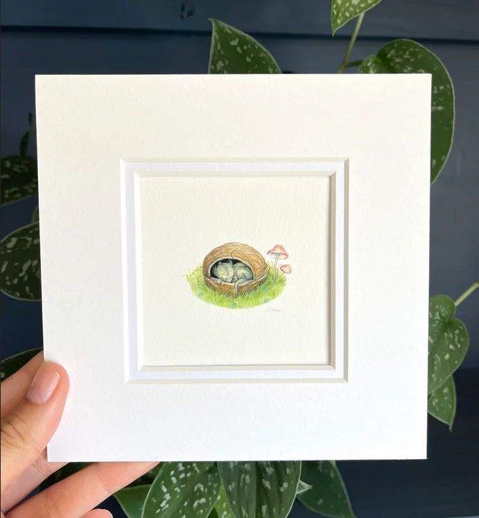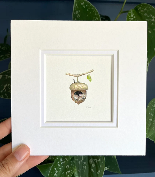 This is a print of an original miniature watercolor painting. It is printed on museum quality paper with archival inks and enhanced with a 6in x 6in double mount, making it ready to frame. There are more mini prints available if you wish to take a look.
