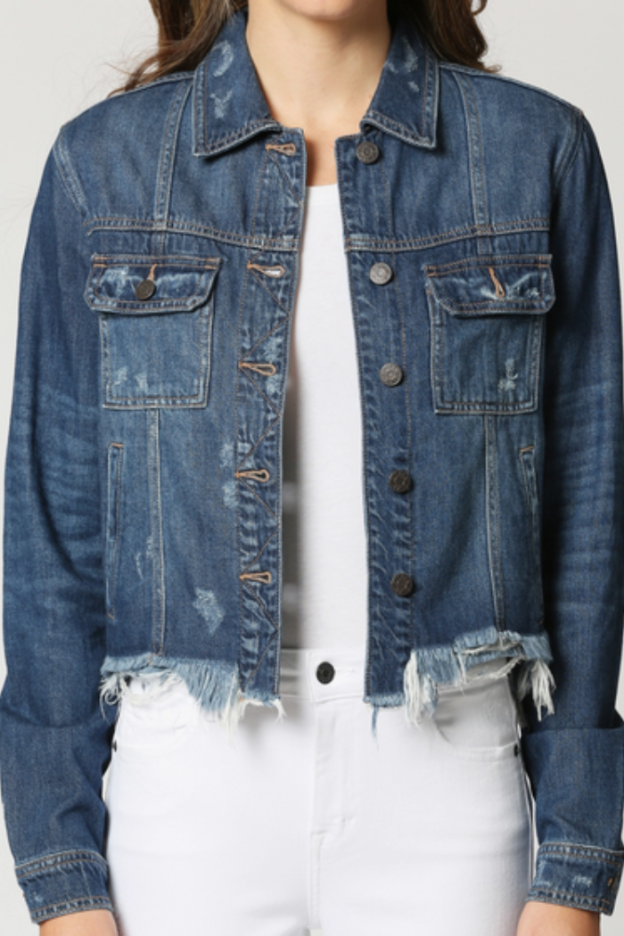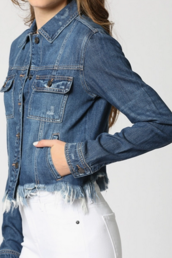 Dark Wash Cropped Fitted Jean Jacket