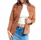 Fashion meets function with this classic denim utility jacket, a versatile wardrobe staple that transcends the seasons. This lightweight military-inspired jacket is crafted with exceptionally soft and stretchy twill fabric for a comfortable, lived-in feel. It’s slightly fitted to shape the body and features cargo-inspired pockets, a button front, and collared neckline. Made with 97% Cotton, 3% Spandex. Front Body Length: 31.5", Bottom Sweep: 52". Machine wash cold; Tumble dry.