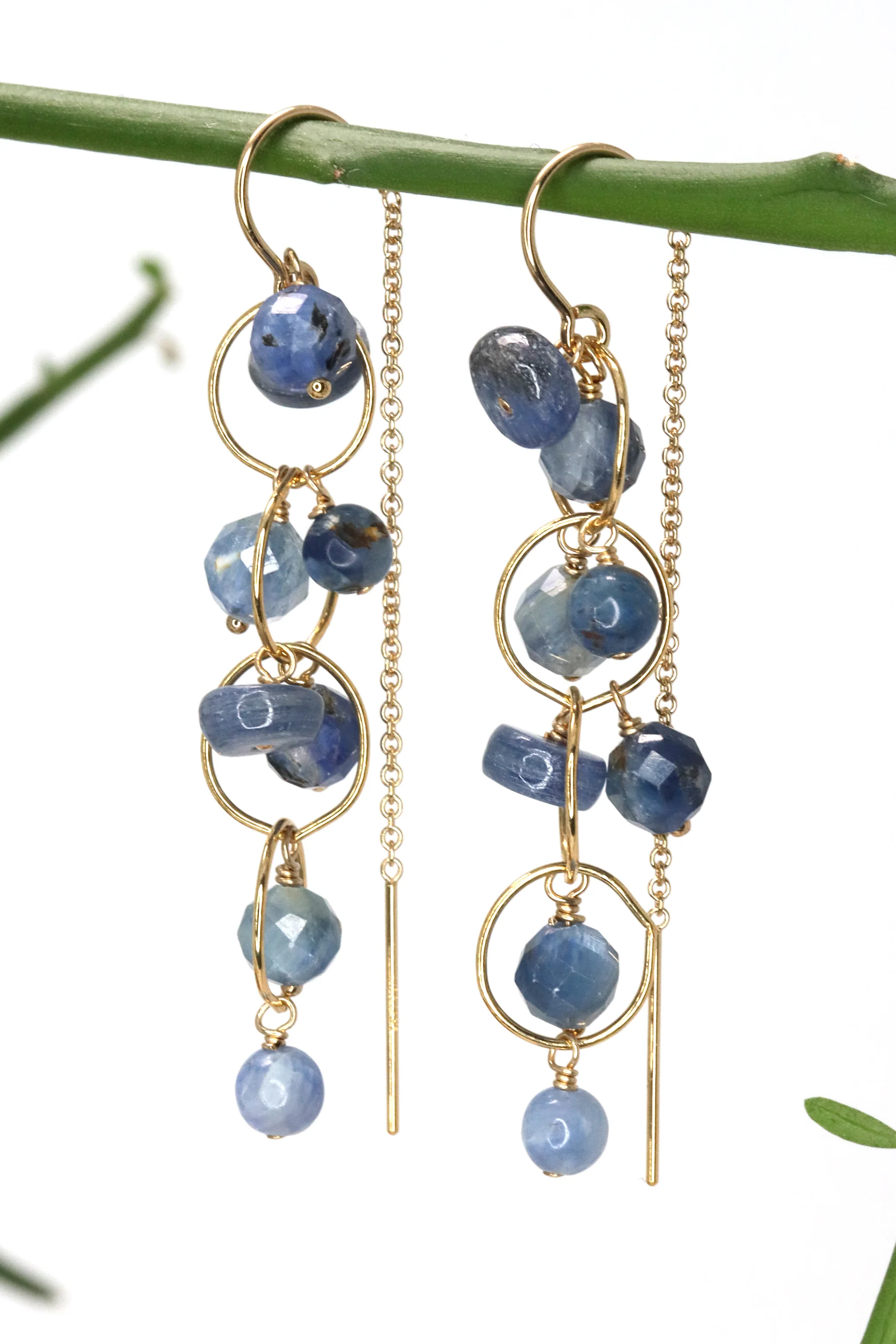 Wear this grounding cascade of kyanite to dress up your look and quiet your soul. With a variety of shades and textures, these stunners will complete any outfit.