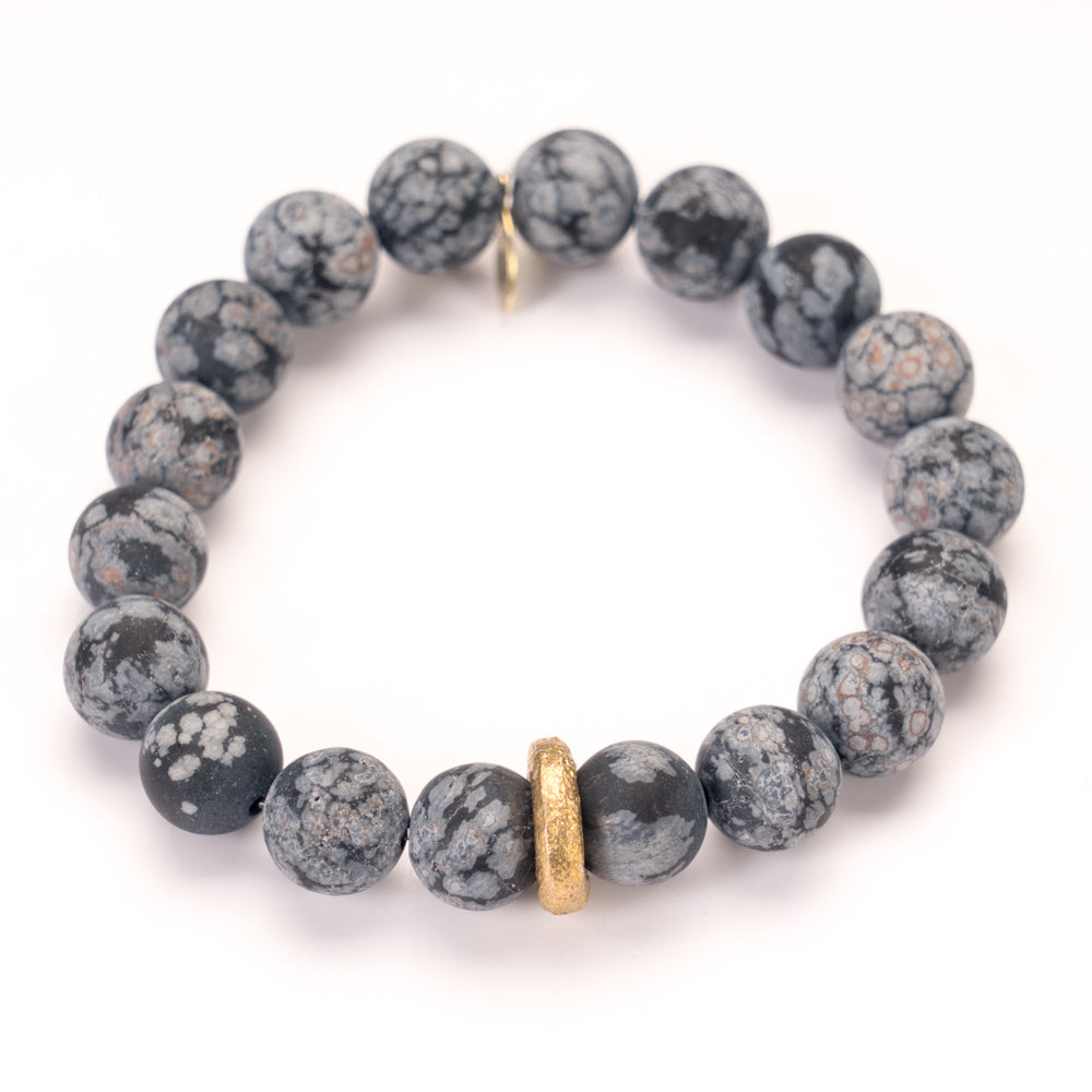 Obsidian Crystal Bracelet | Matte Snowflake + Boho Ring