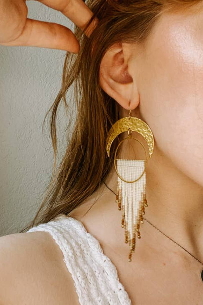 Over the Moon Set Hand Beaded Earrings