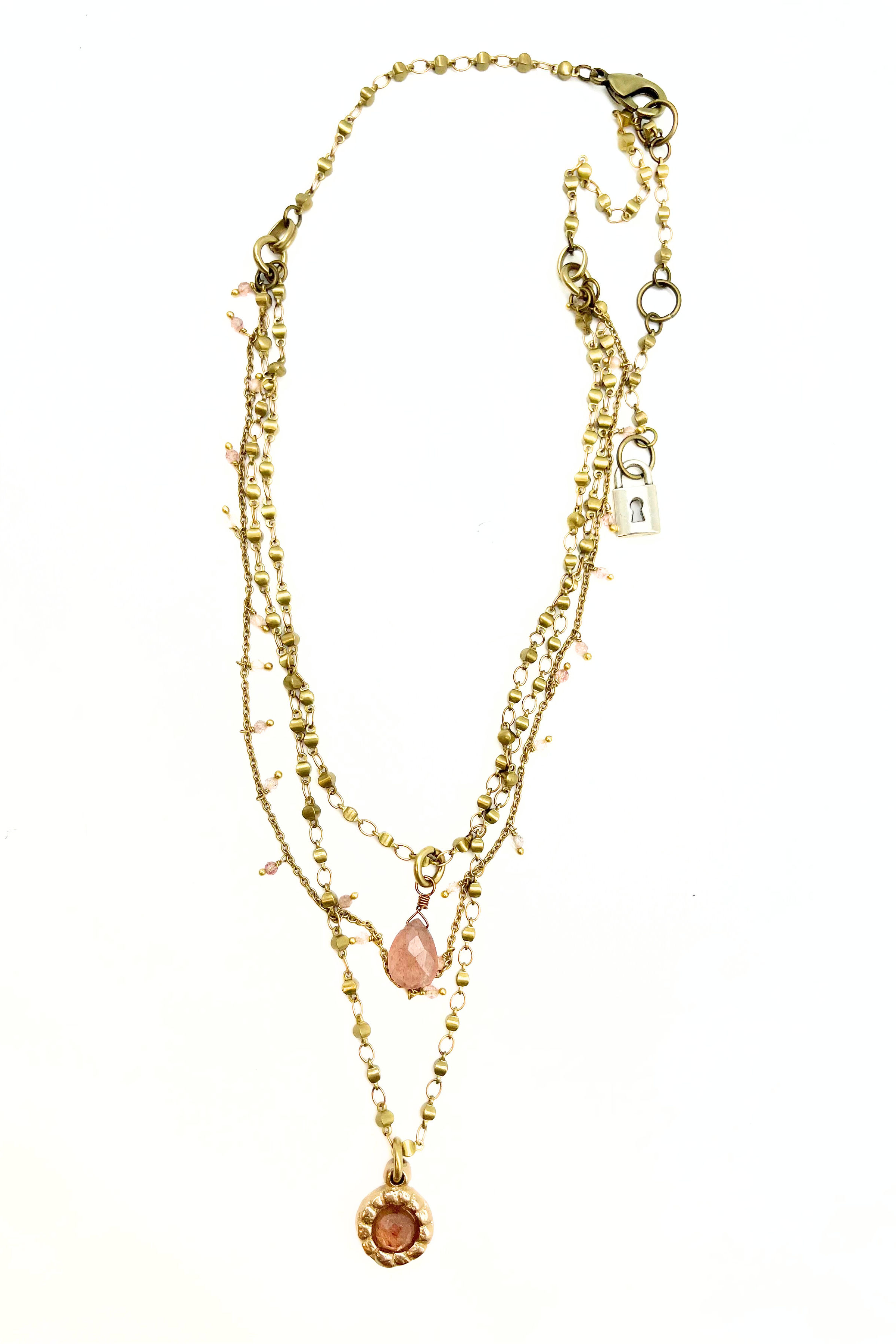Strawberry Quartz Triple Strand Necklace