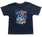 A kids' short-sleeve band tee featuring a colorful hypno bunny graphic and Green Day logo. The Green Day Hypno Bunny Tee has a classic crewneck and a relaxed cut ideal for everyday wear. Made by Rowdy Sprout, this shirt shows vibrant distressed-print detailing across the chest for a worn-in, vintage vibe. It layers easily under jackets or pairs with shorts for casual, music-inspired styling.