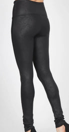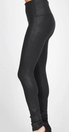 Features an iconic six inch tummy-control waistband and a leather-like sheen.