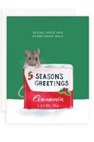 Sugar, spice, and everything mice! This cheeky little critter is here to stir up some holiday mischief (and maybe raid your spice cabinet while he’s at it). The Spice Mice Holiday Card is a whimsical Christmas greeting card featuring original watercolor artwork by Cami Monet. With its festive cinnamon spice tin and sweet mouse illustration, it’s the perfect card for bakers, foodies, and anyone who loves cozy holiday kitchen vibes. Great for sending holiday cheer, slipping into Christmas gifts, or pairing with homemade cookies, this blank Christmas card is ready for all your heartfelt messages.
