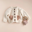 Wear your heart on your pockets with our Heart cardigan featuring Blush hearts on our Cream cardigan. Perfect for a Valentine's Day outfit or just every day sweetness.