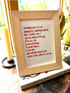A simple quote print featuring a colorful, typographic poem. The Quote Print pairs warm watercolor tones with clean white matting for a cheerful tabletop or shelf accent. This piece is by J. K. Kennedy and reads like a playful, introspective line of verse. It’s an easy gift or home accent that layers well with books and small decorative objects.