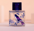 Showcasing a striking songbird as it peers through the glass, this elegantly modern bottle makes a lovely addition to any boudoir.