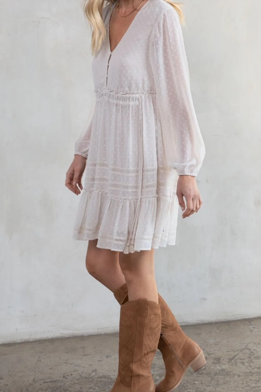 Dreamy Sheer Swiss Dot Long Sleeve Mini Dress
