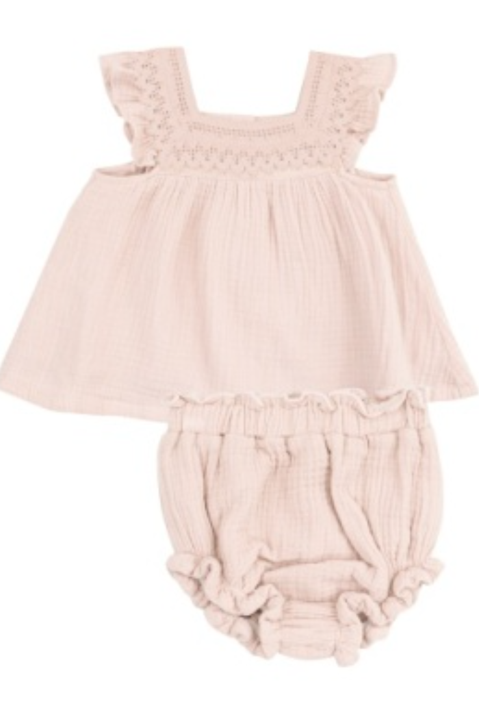 Rose Smoke Pinafore w/Crochet Heart Lace & High Waisted Diaper Cover