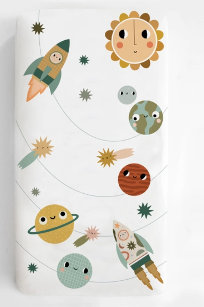 Our fitted crib sheet fits US standard crib mattresses 52 x 28 inches. Made with soft 100% cotton sateen, 230 thread count. OEKO-TEX® certified and crafted without harmful chemicals. Lab tested to last, compliant with US regulations. Premium printing method ensures colorful, sharp details that remain vibrant.