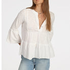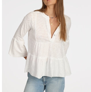 Always love a fresh white top and jeans. this cotton tiered top with an adorable, tiered sleeve.