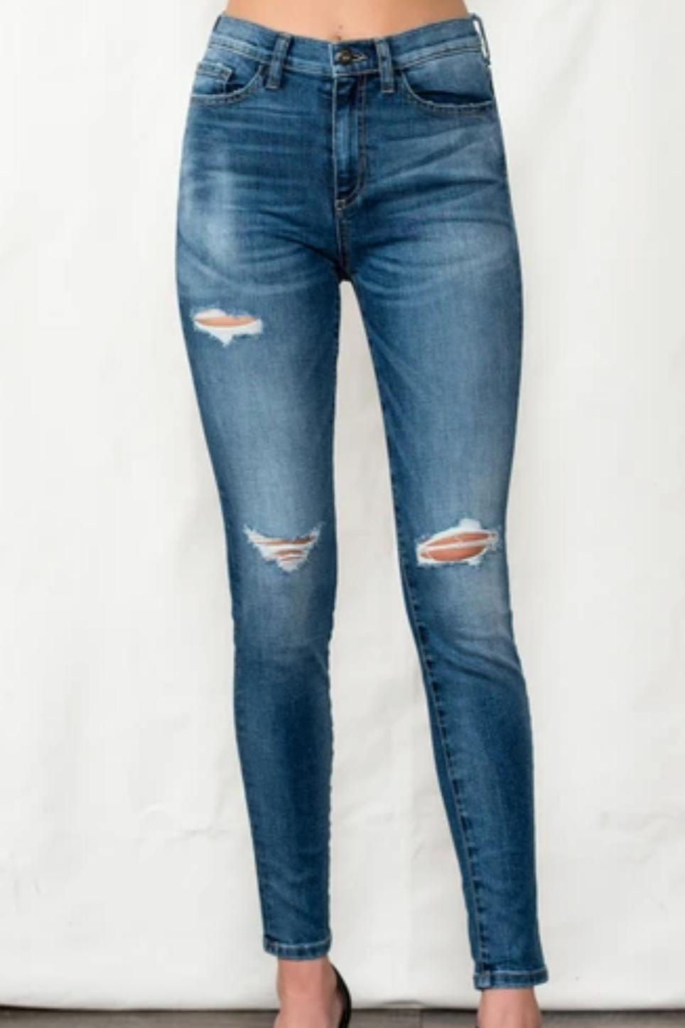 Mid Rise Skinny Jean With Distressing
