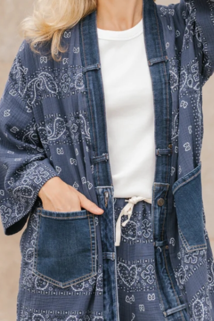 Upcycled Denim Bandana Print Cardigan/Kimono