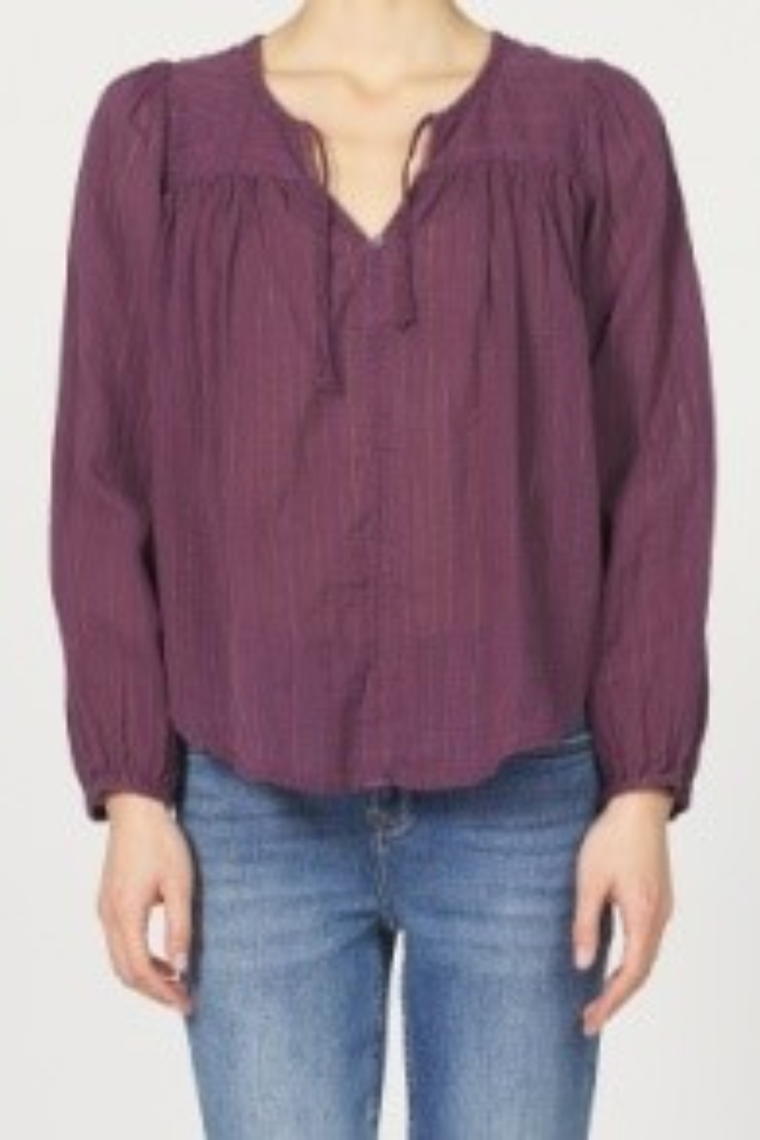 V neck long sleeve relaxed fit top featuring a tie neck. A perfect blend of comfort and style, this top is designed to be your versatile go-to choice for any casual outing. The thoughtful detailing enhances its utility, making it suitable for a variety of occasions. Elevate your wardrobe with this essential piece and enjoy effortless dressing every day.