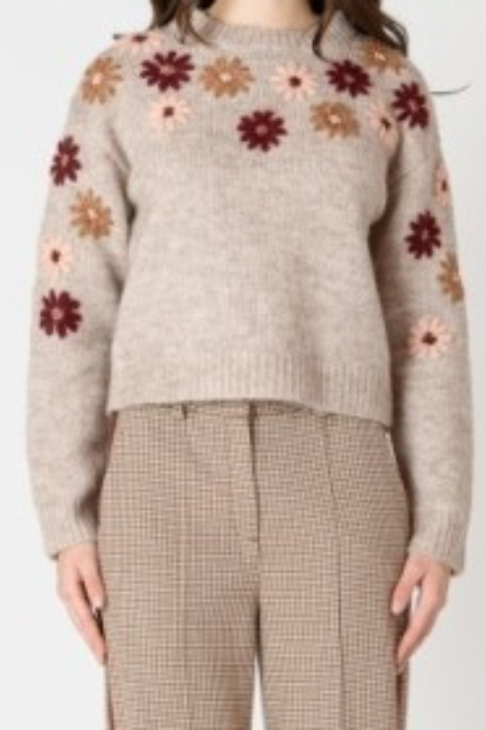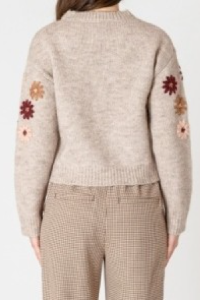 Crewneck Floral Applique Sweater