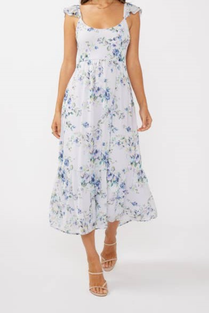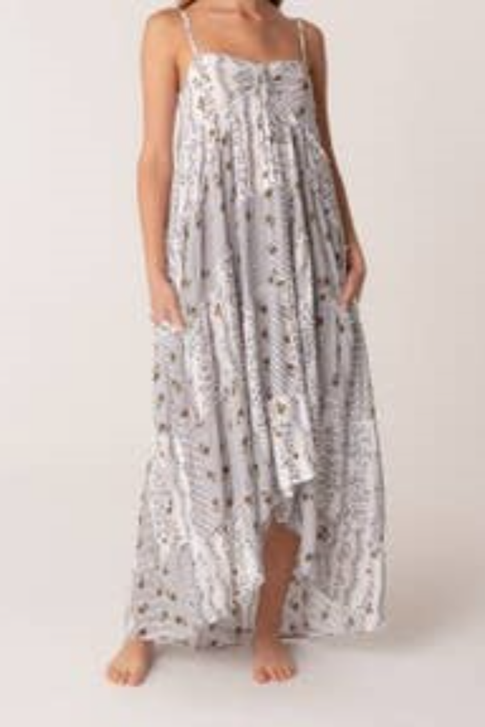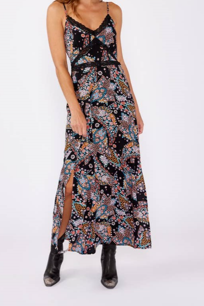 Floral Spaghetti Strap Lace Trim Maxi Dress