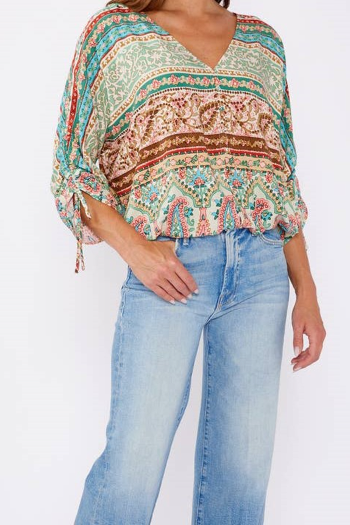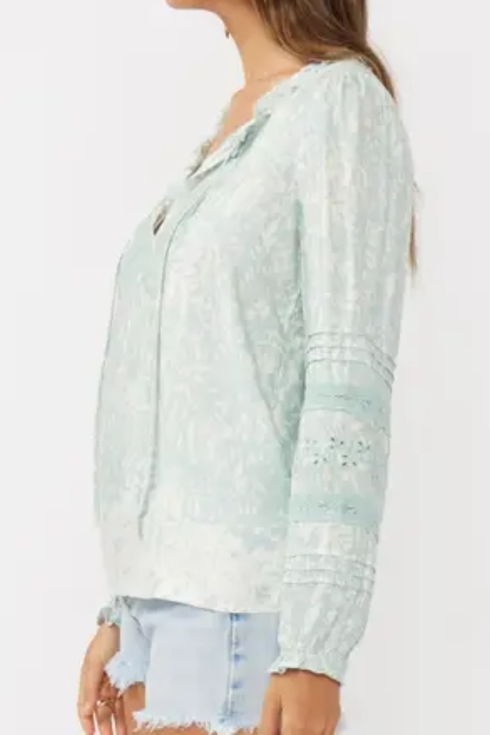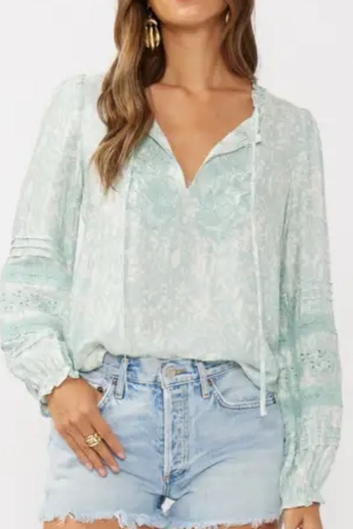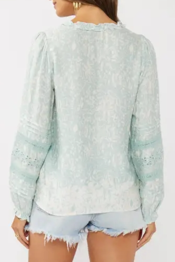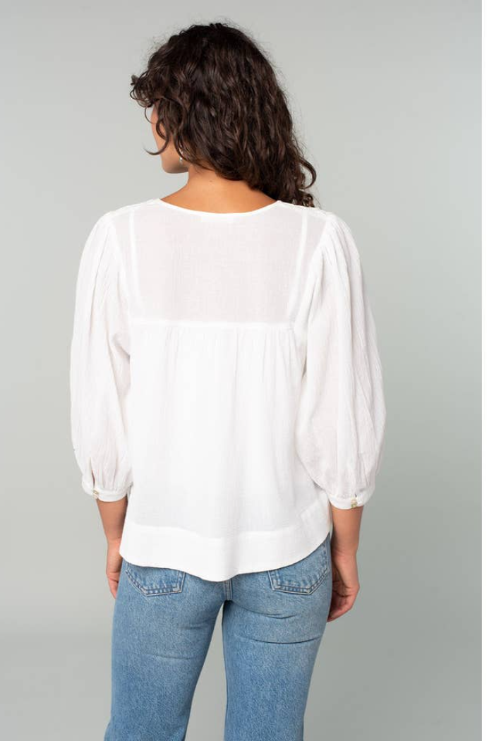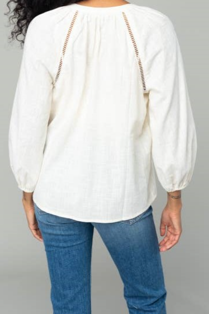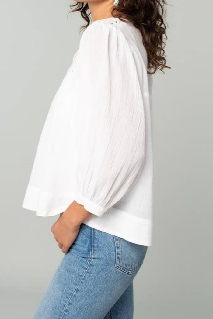 Cotton Gauze 3/4 Sleeve Lattice Yoke Blouse