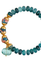 A stunning combination of bold teal beads add multi-colored African accents create a cheerful, eye-catching design. Finished with a gemstone and gold detailing, this bracelet captures the spirit of fun and individuality. Perfect for stacking or wearing on its own, it brings a lighthearted touch to your daily look. Stretch fit for ease, designed for everyday wear.