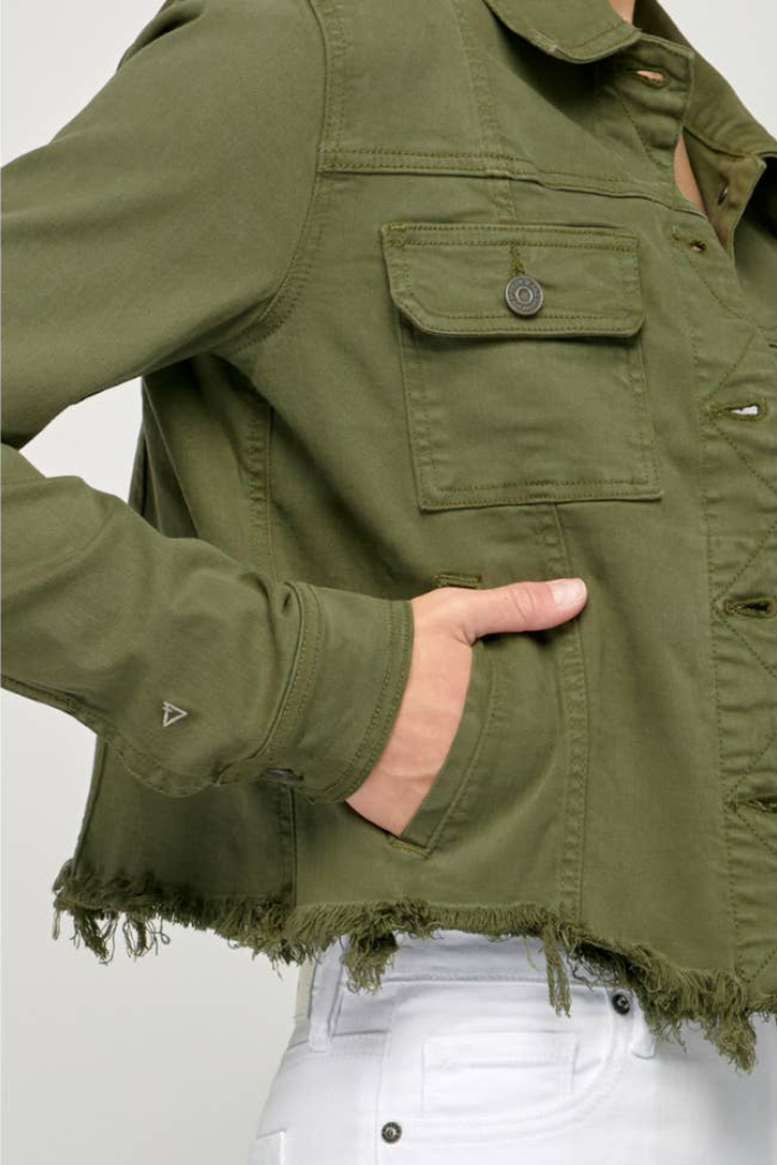 The perfect gift. Cropped, fitted and frayed, compliment any outfit with this amazing denim jacket. Stretch for comfort. Great for looks.