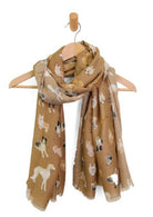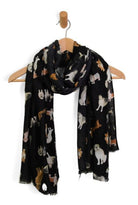 Cute, lightweight, fringed hem scarf with a mixed dog breed patternSize 180 x 85 inches