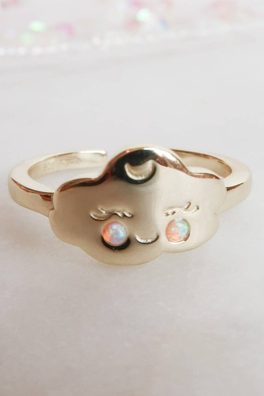 * 14k Gold-plated Sterling Silver Cloud Face Ring with Opal Blush