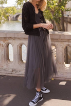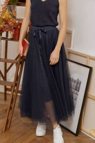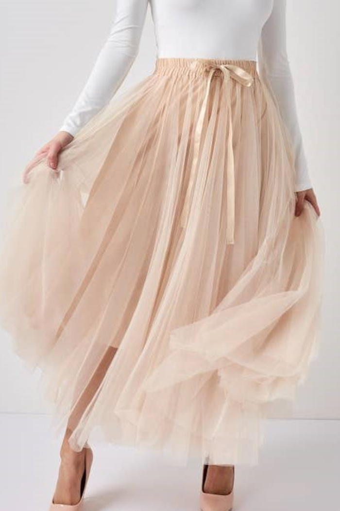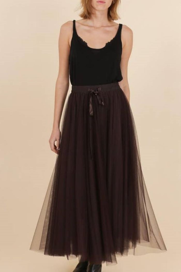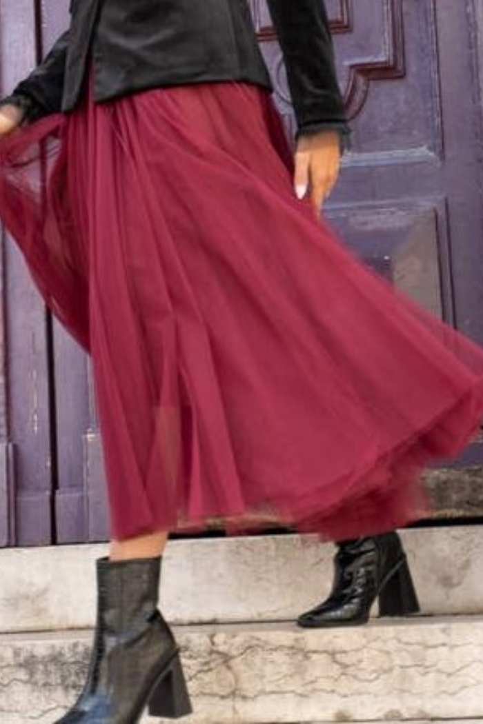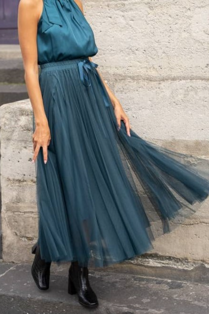 Playing with volumes, this iconic skirt is distinguished by a flared cut, enhanced with ruffles, offering a ruffle effect on the bottom. It is available in a variety of colors.