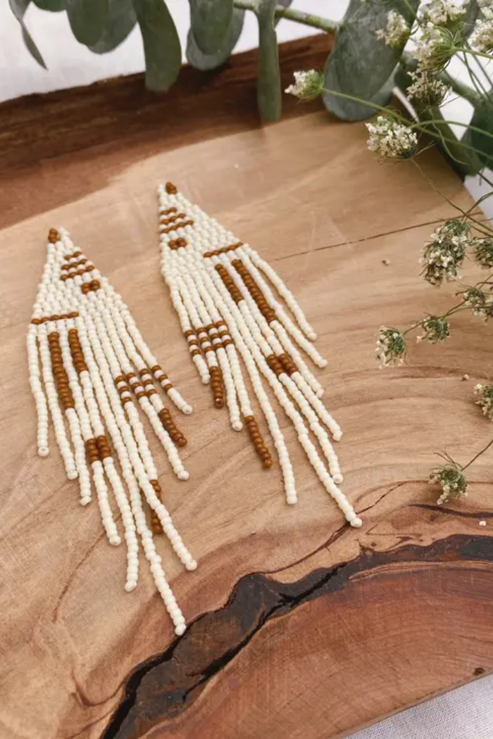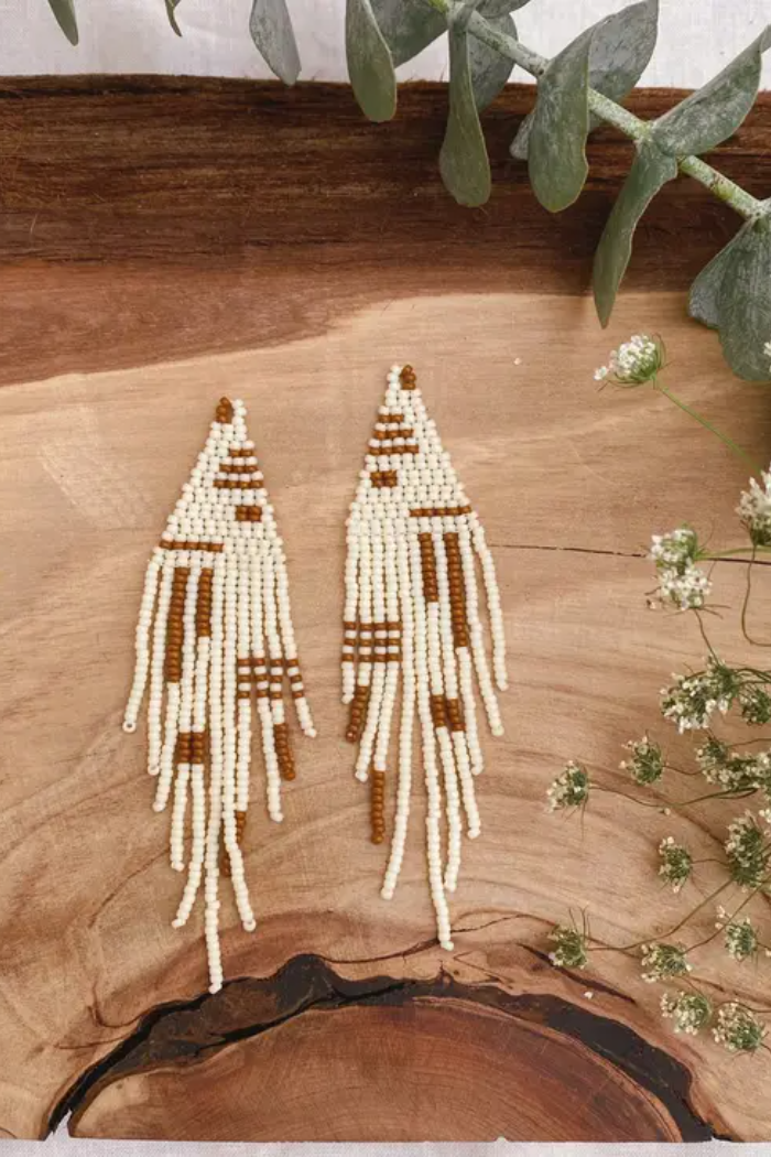 Handwoven with Japanese glass seed beads. Approximately 4 inches long. Comes on sterling silver ear wires unless asked otherwise. Slight variations may occur.